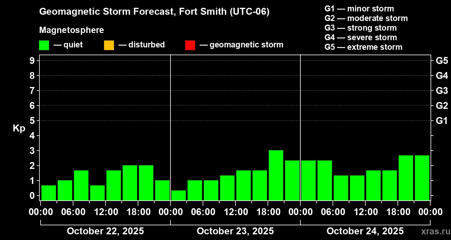Geomagnetic storm forecast in Fort Smith for Oct 22, 2025