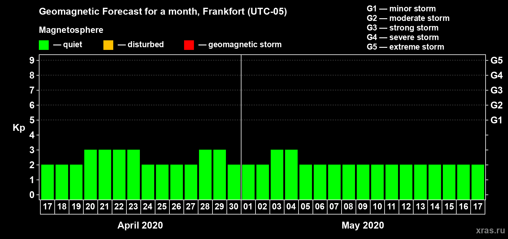 Geomagnetic storm forecast in Frankfort for Apr 17, 2020