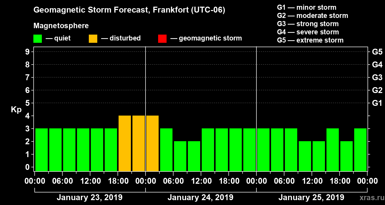 Geomagnetic storm forecast in Frankfort for Jan 23, 2019