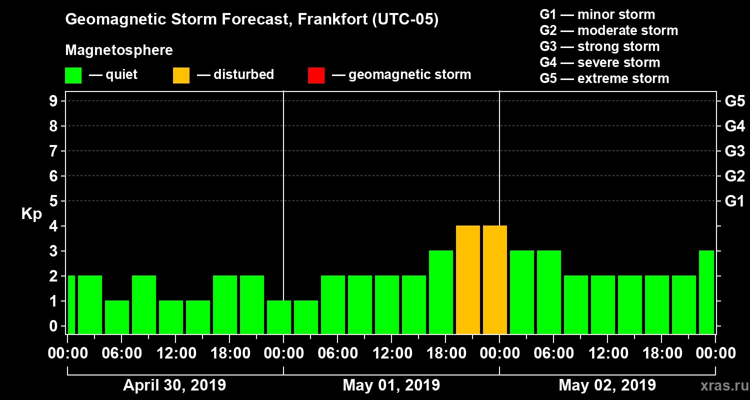Geomagnetic storm forecast in Frankfort for Apr 30, 2019
