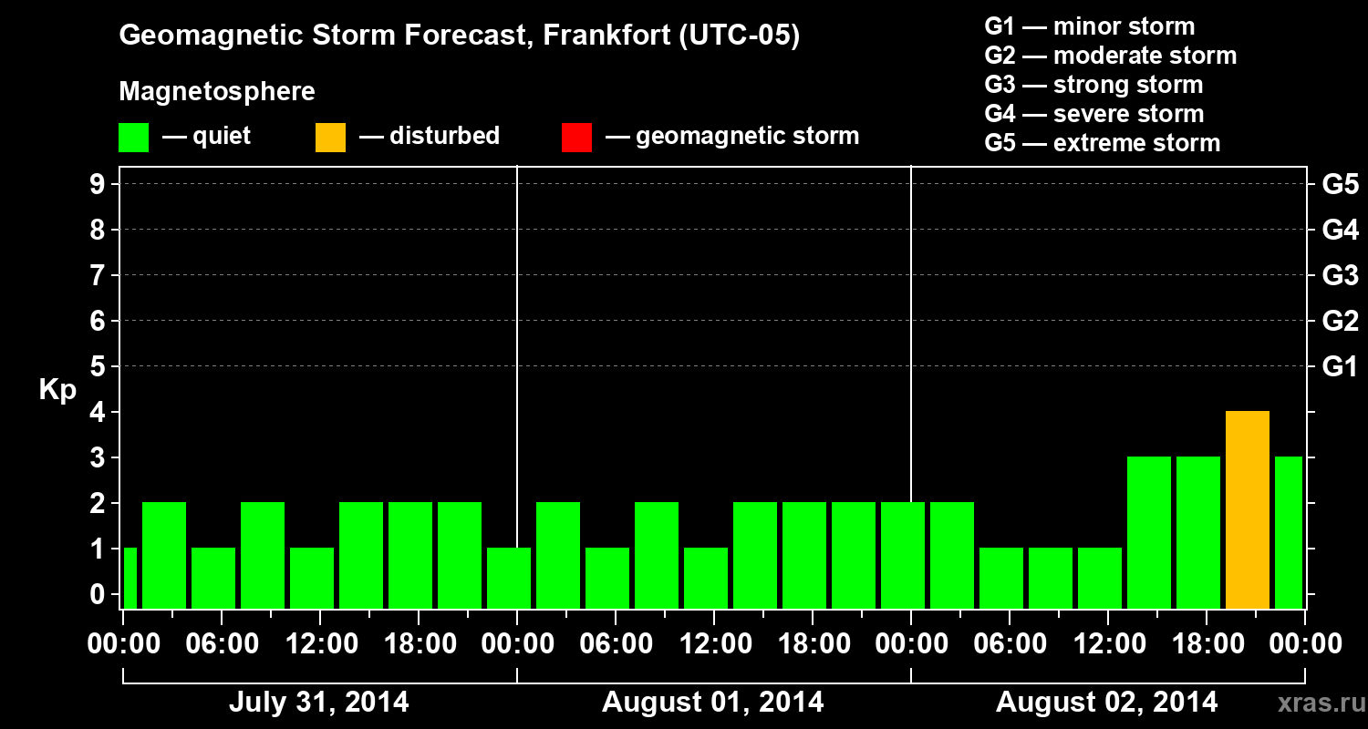 Geomagnetic storm forecast in Frankfort for Jul 31, 2014