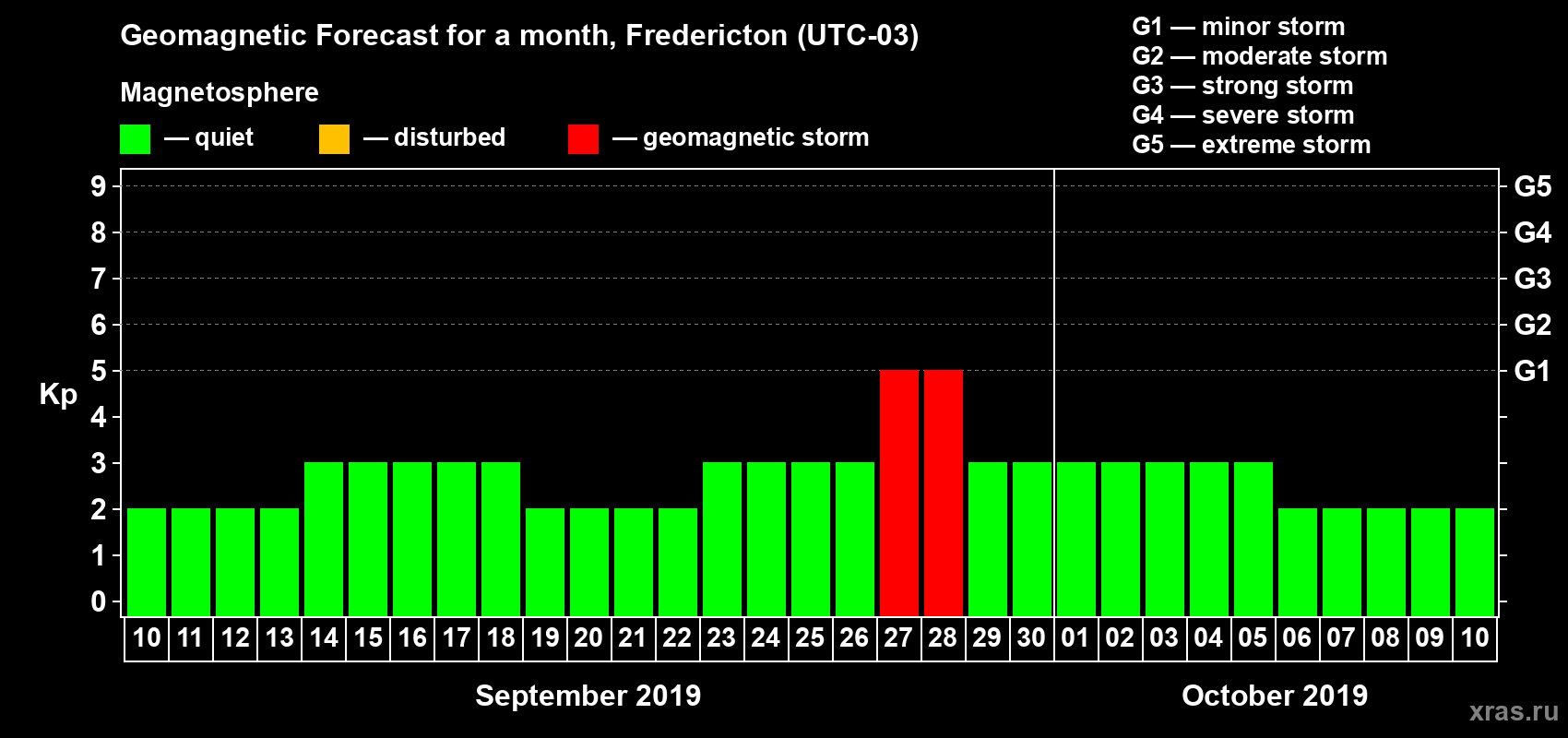 Geomagnetic storm forecast in Fredericton for Sep 10, 2019