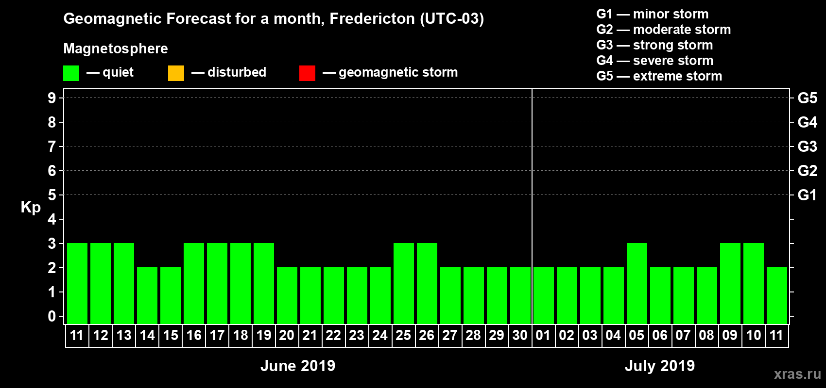 Geomagnetic storm forecast in Fredericton for Jun 11, 2019