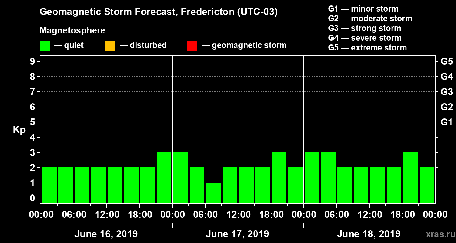 Geomagnetic storm forecast in Fredericton for Jun 16, 2019