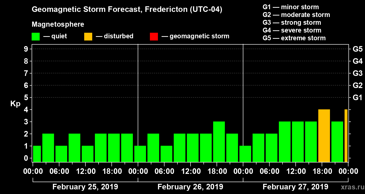 Geomagnetic storm forecast in Fredericton for Feb 25, 2019