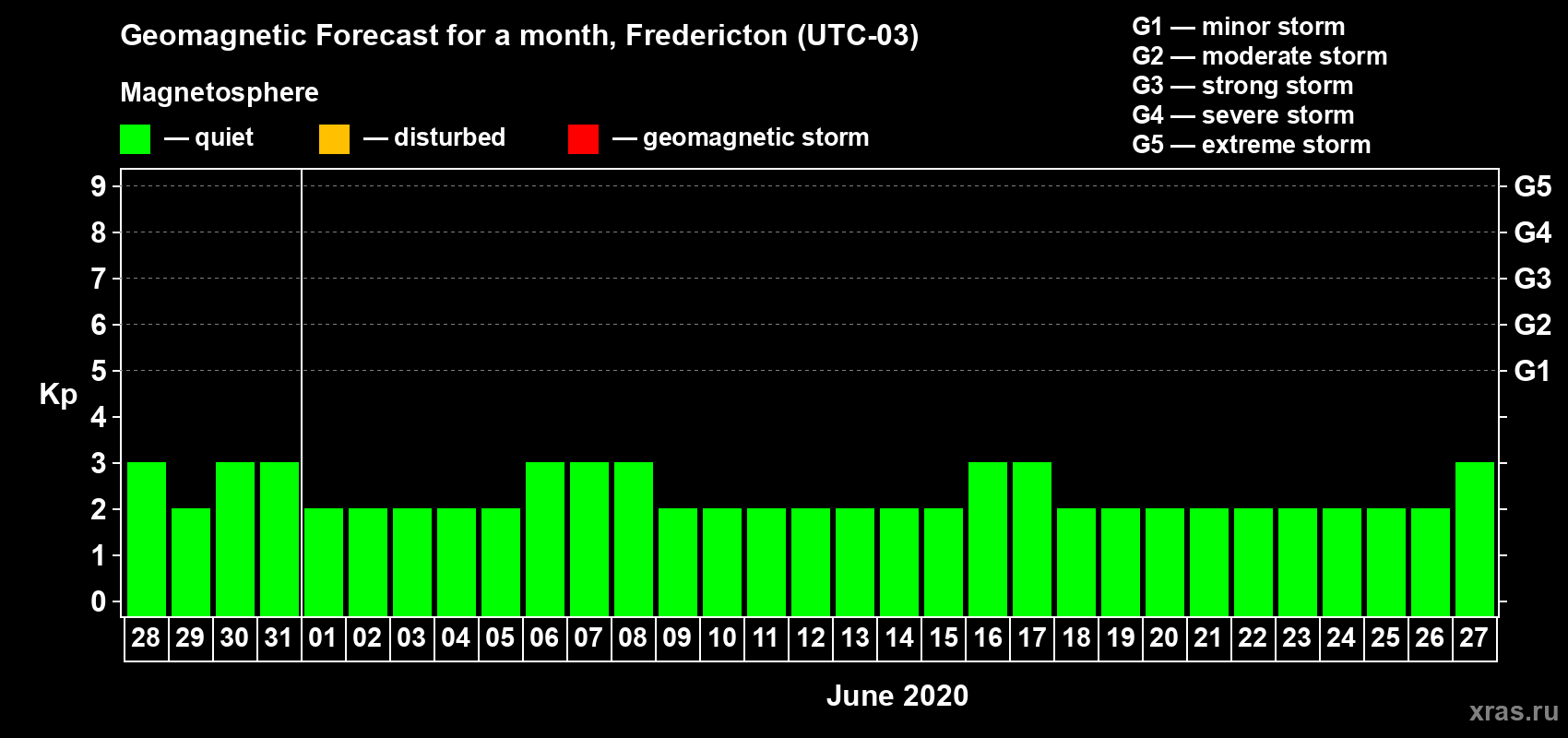 Geomagnetic activity forecast in Fredericton — May 28, 2020