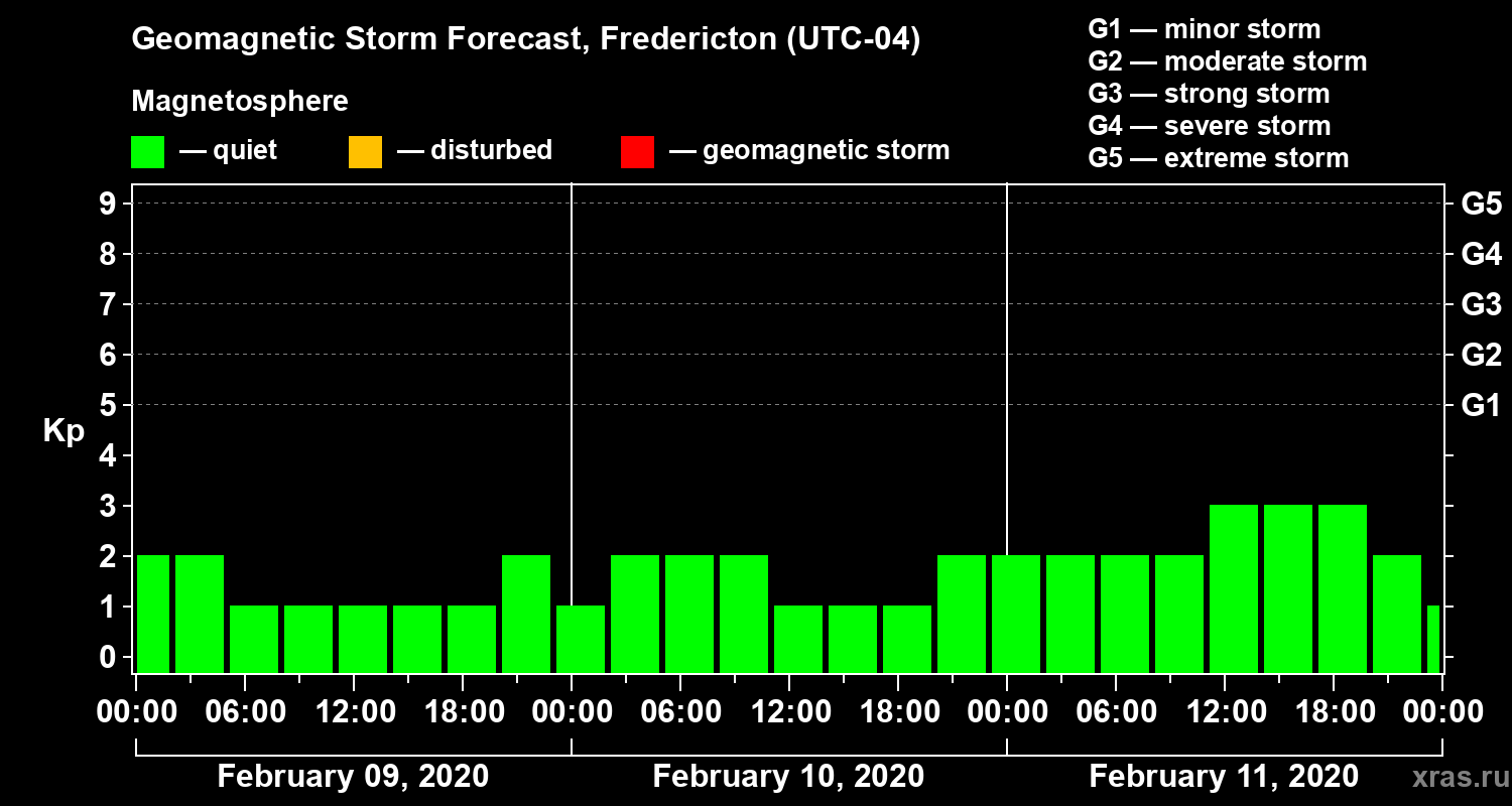 Geomagnetic storm forecast in Fredericton for Feb 09, 2020