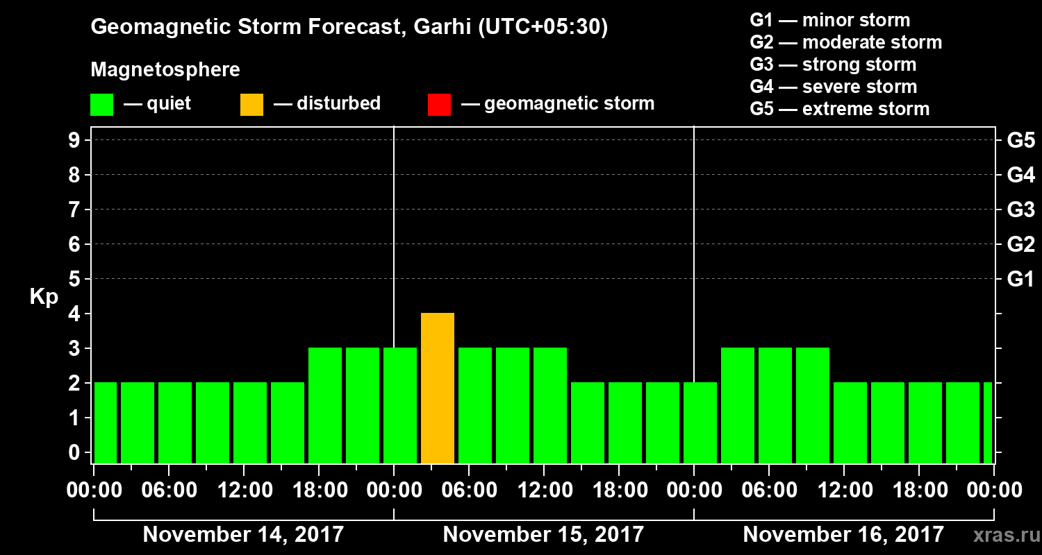 Geomagnetic storm forecast in Garhi for Nov 14, 2017