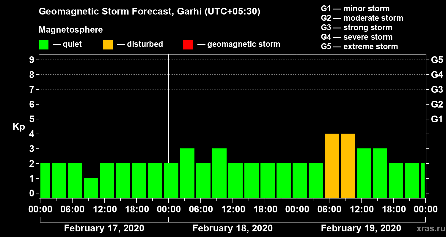 Geomagnetic storm forecast in Garhi for Feb 17, 2020