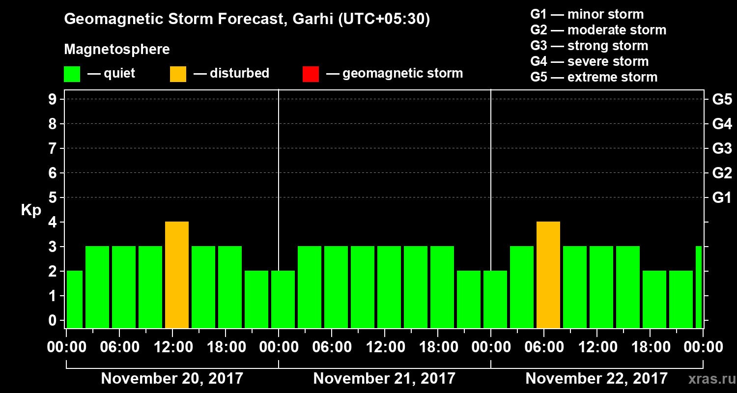 Geomagnetic storm forecast in Garhi for Nov 20, 2017