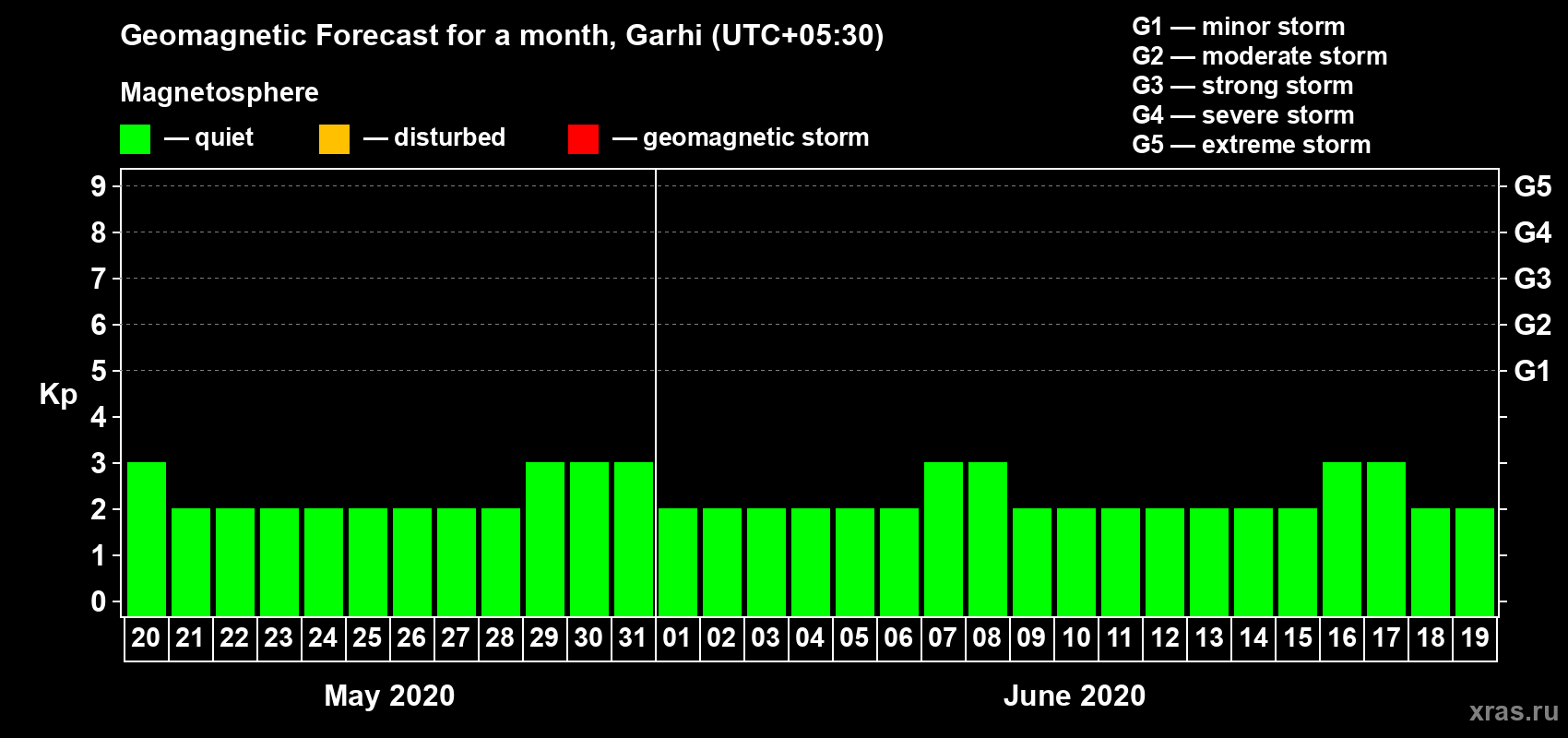 Geomagnetic storm forecast in Garhi for May 20, 2020