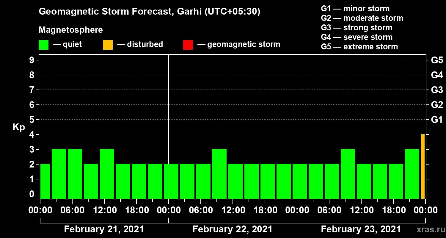 Geomagnetic storm forecast in Garhi for Feb 21, 2021