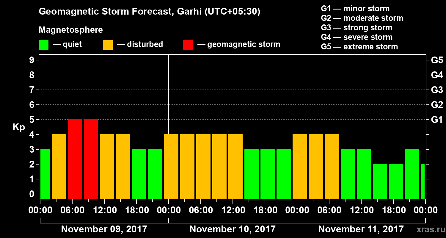Geomagnetic storm forecast in Garhi for Nov 09, 2017