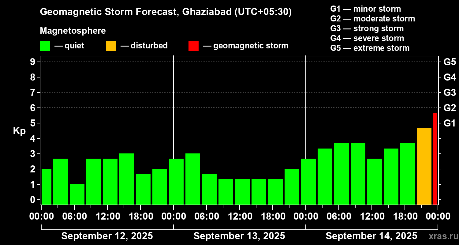 Geomagnetic storm forecast in Ghaziabad for Sep 12, 2025
