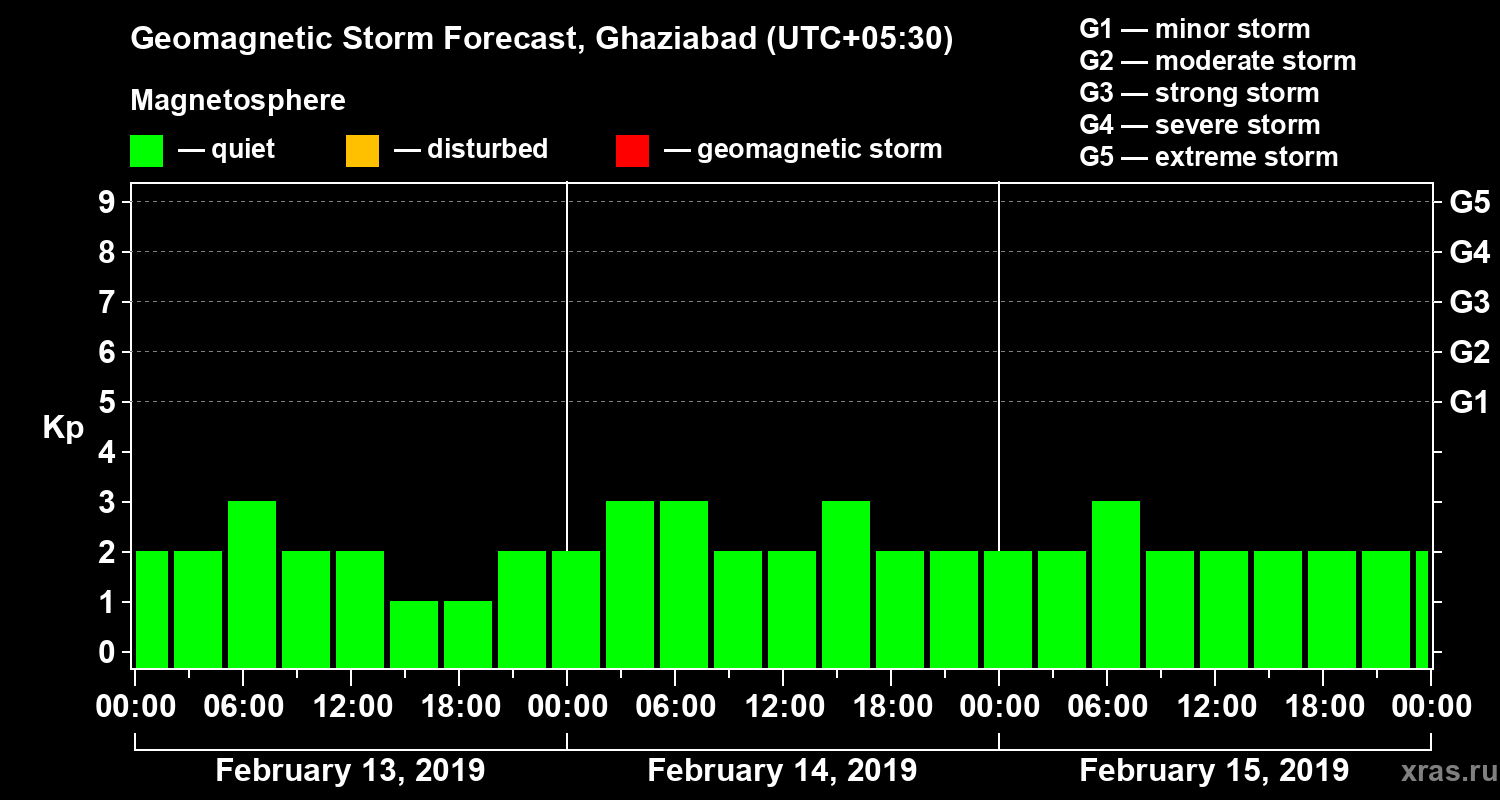 Geomagnetic storm forecast in Ghaziabad for Feb 13, 2019