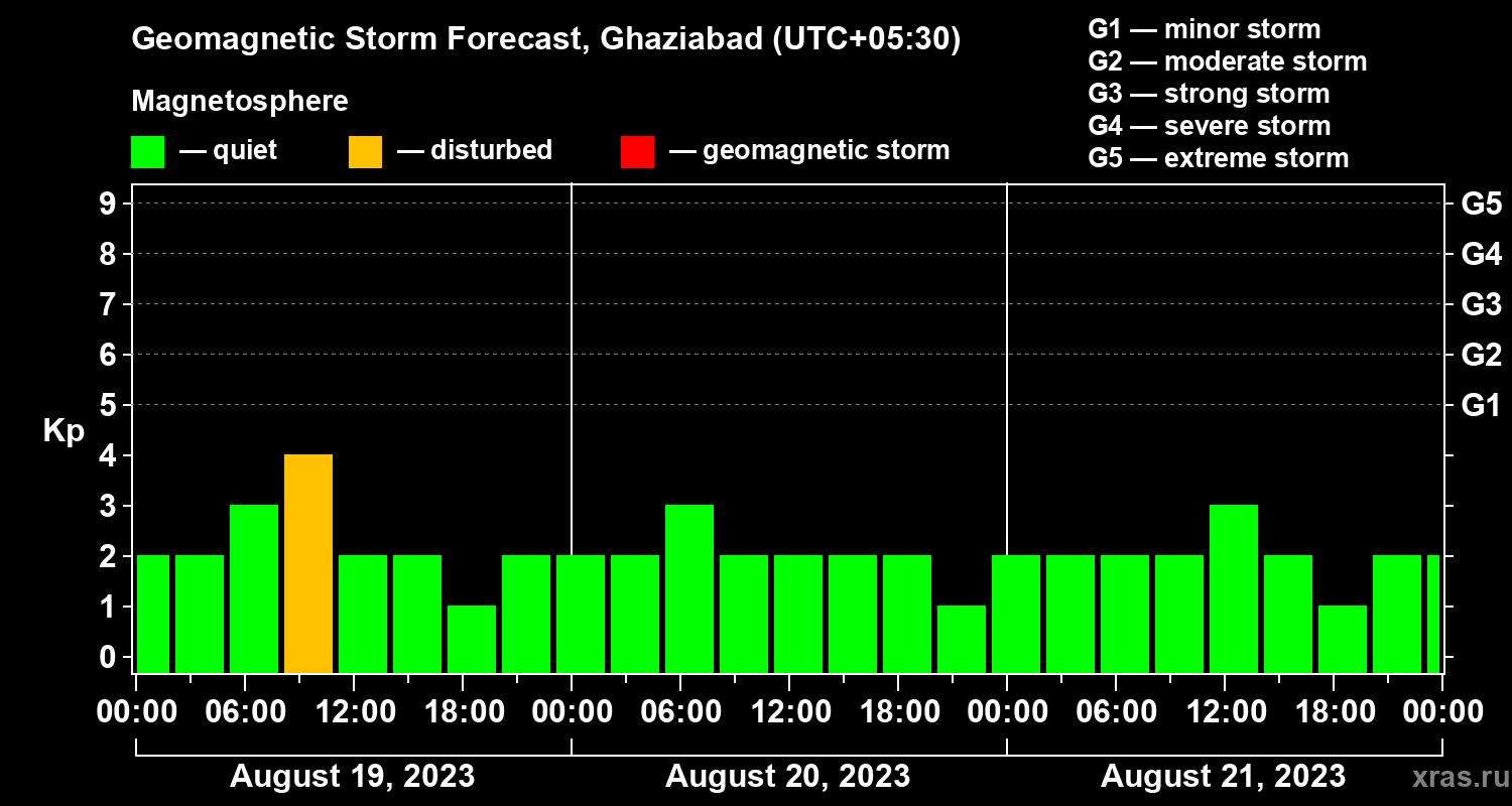 Geomagnetic storm forecast in Ghaziabad for Aug 19, 2023