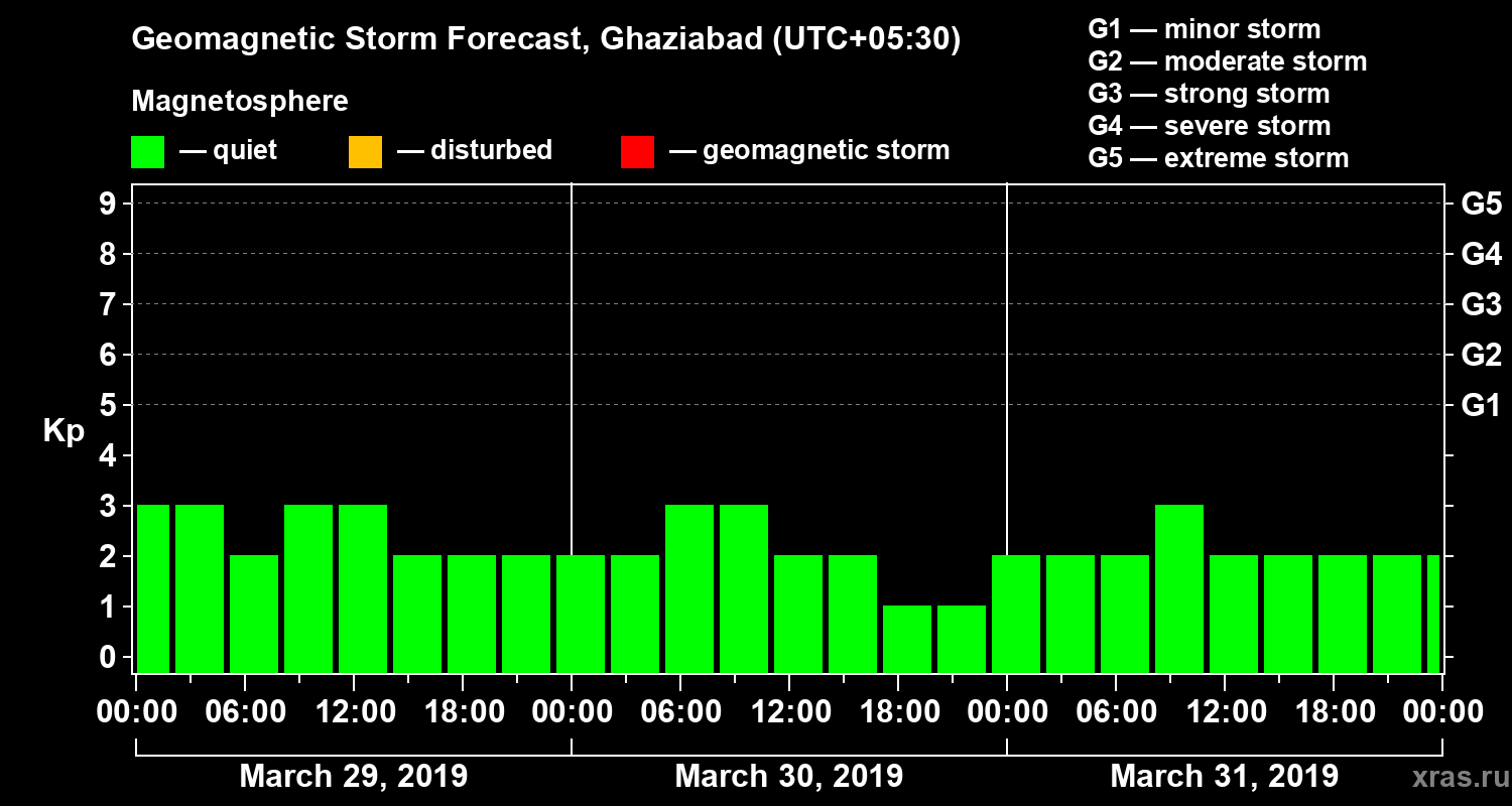 Geomagnetic storm forecast in Ghaziabad for Mar 29, 2019