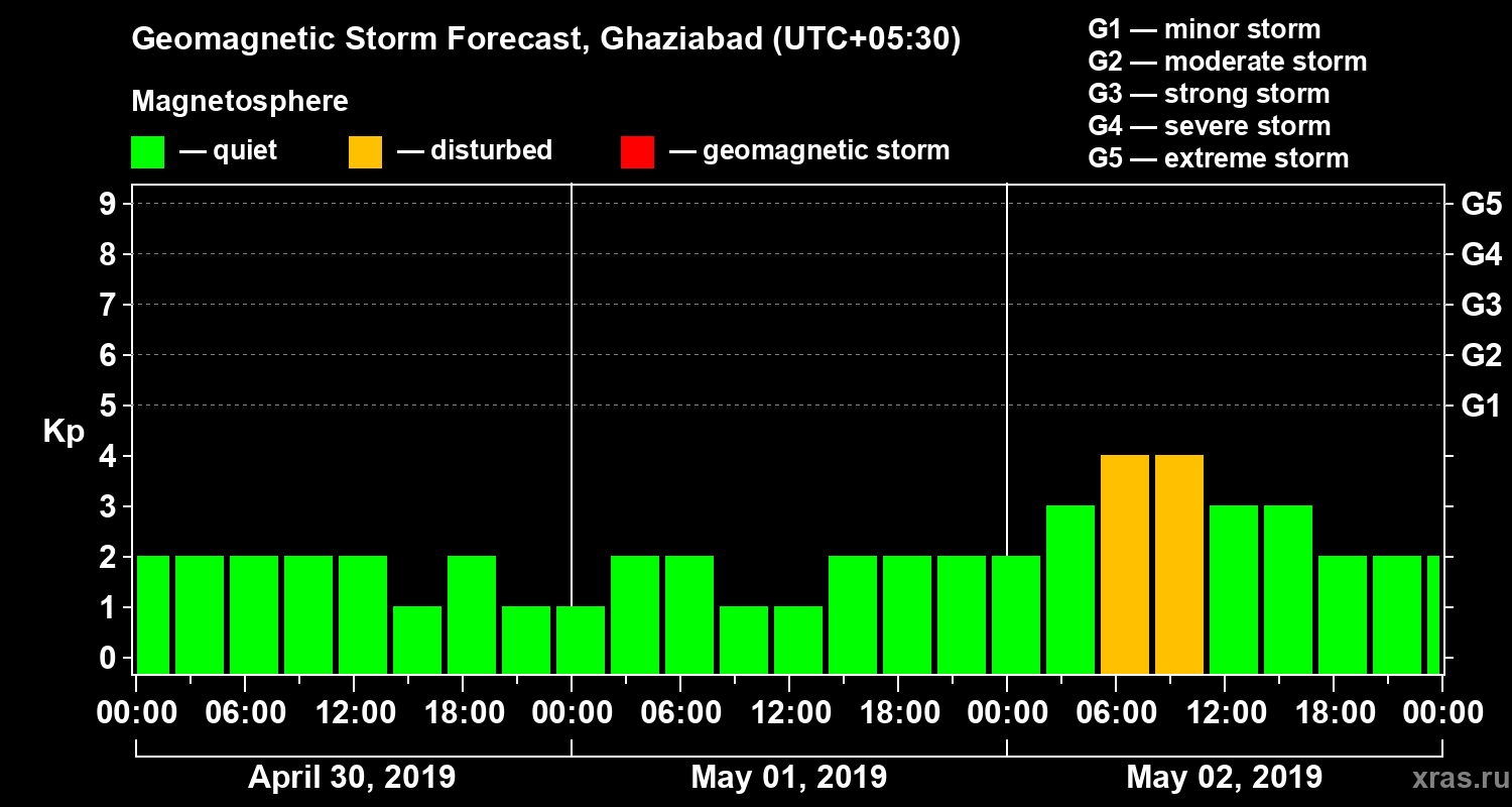 Geomagnetic storm forecast in Ghaziabad for Apr 30, 2019