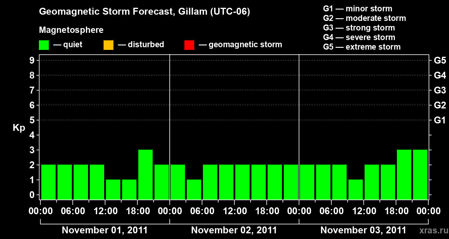 Geomagnetic storm forecast in Gillam for Nov 01, 2011