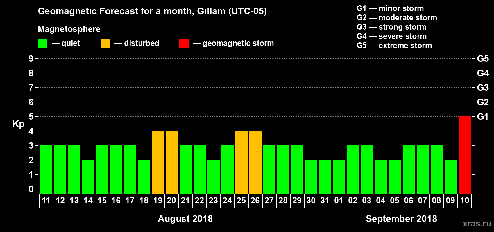 Geomagnetic storm forecast in Gillam for Aug 11, 2018