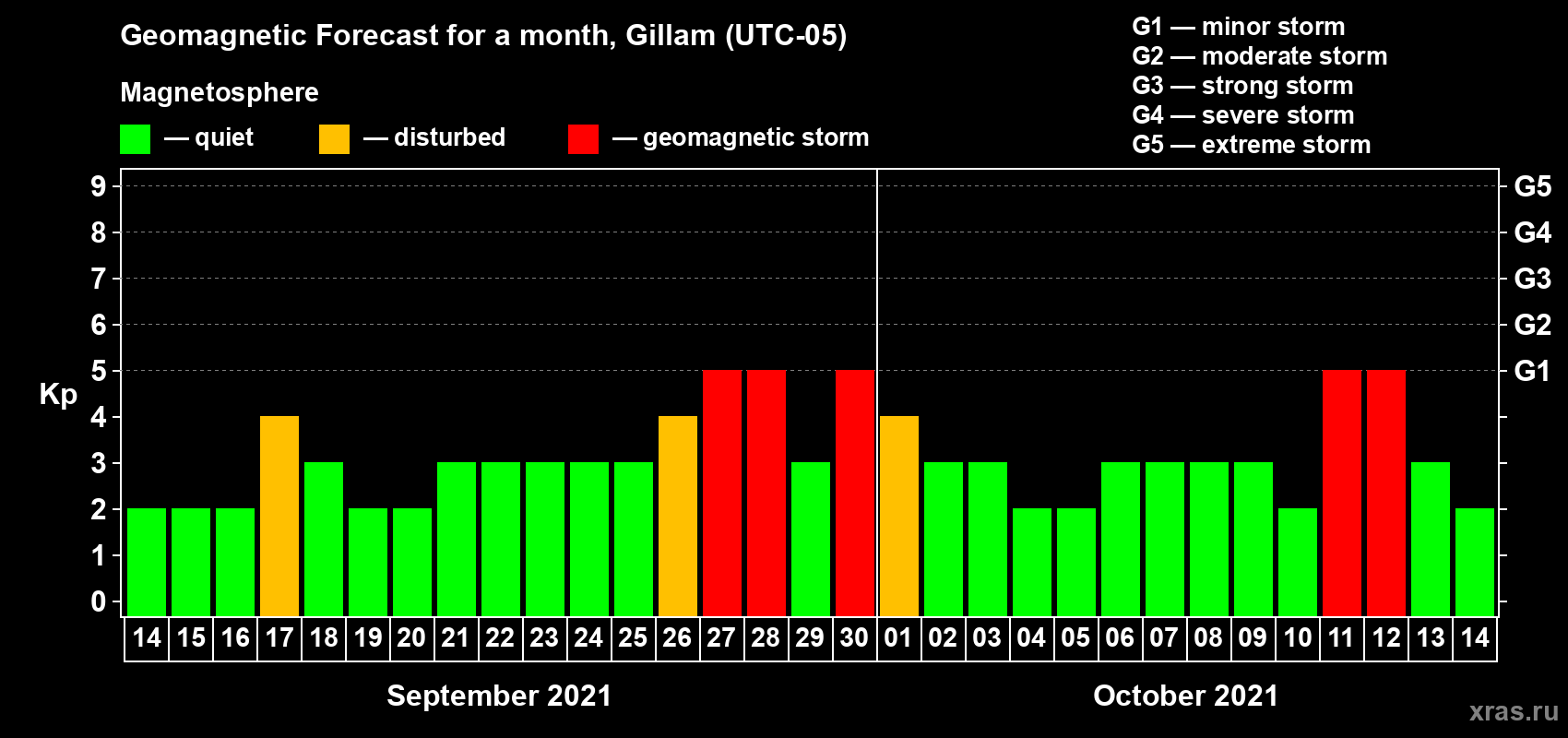 Geomagnetic storm forecast in Gillam for Sep 14, 2021