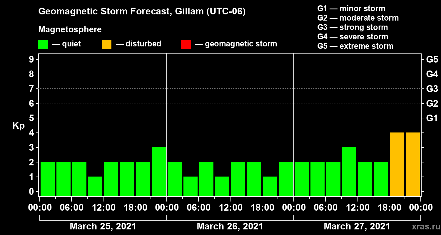 Geomagnetic storm forecast in Gillam for Mar 25, 2021