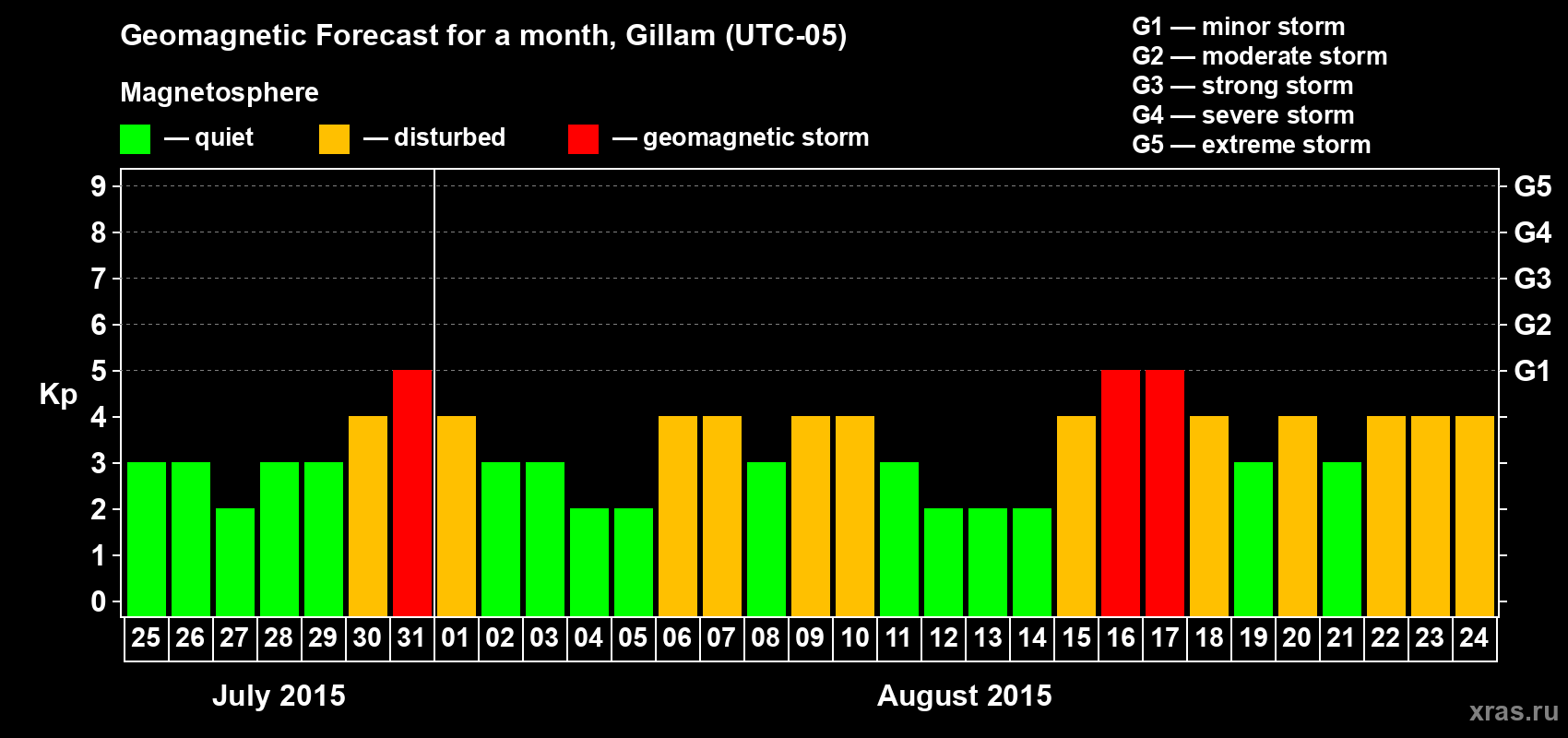 Geomagnetic storm forecast in Gillam for Jul 25, 2015