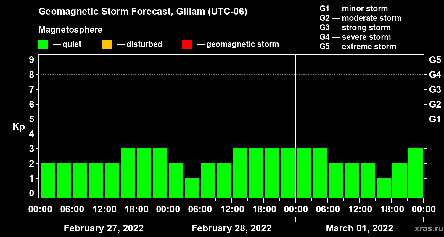 Geomagnetic storm forecast in Gillam for Feb 27, 2022