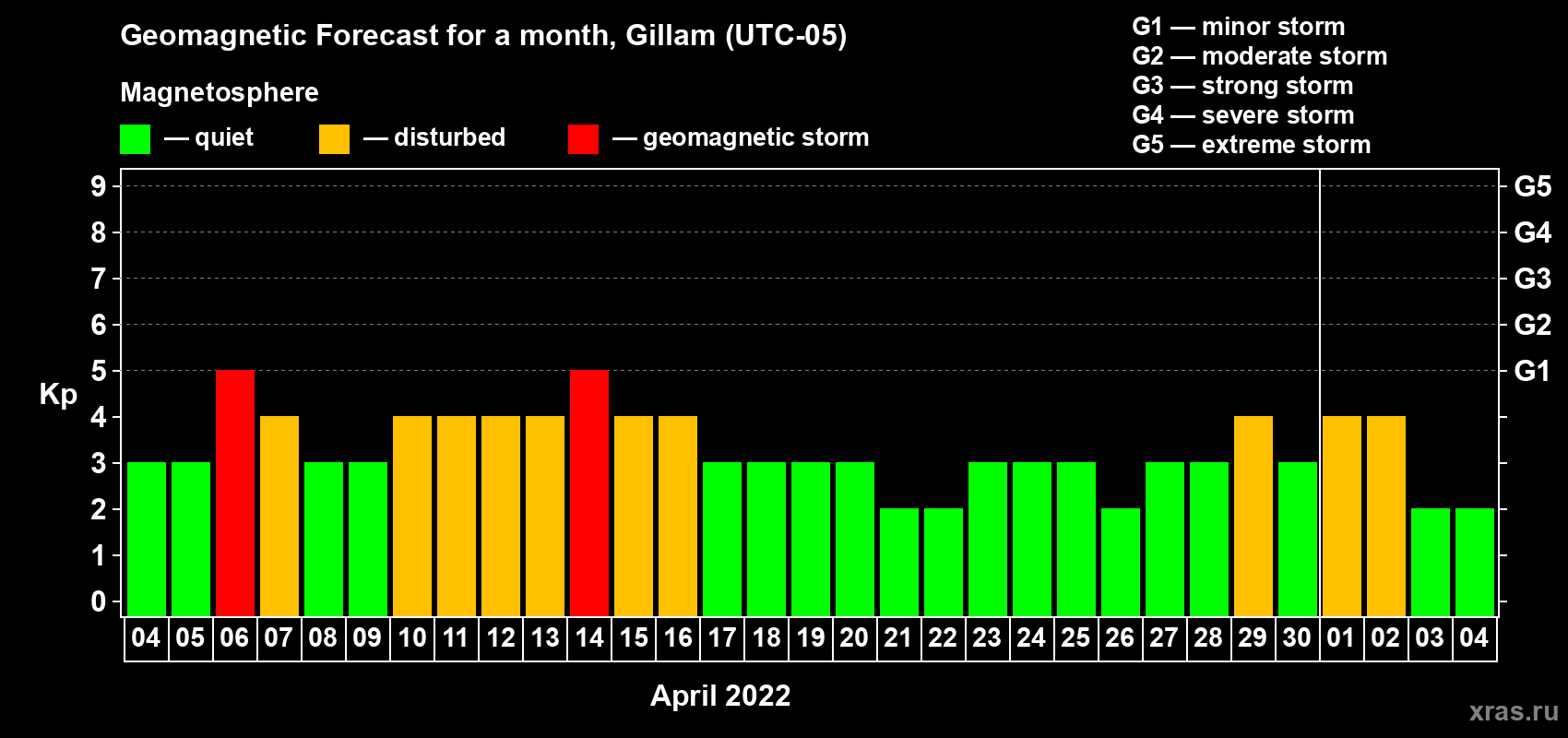 Geomagnetic storm forecast in Gillam for Apr 04, 2022