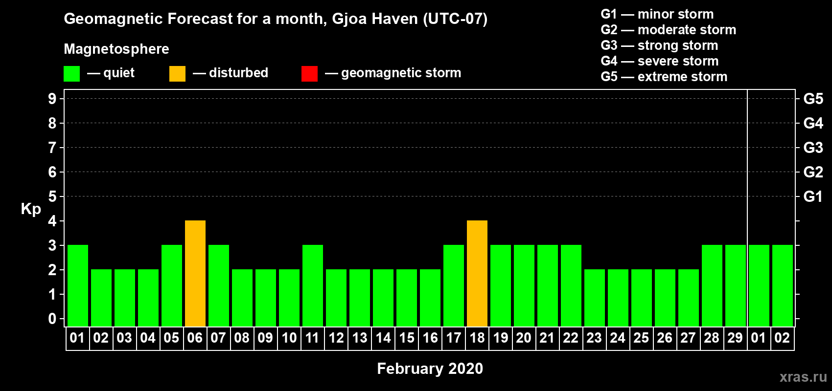 Geomagnetic storm forecast in Gjoa Haven for Feb 01, 2020