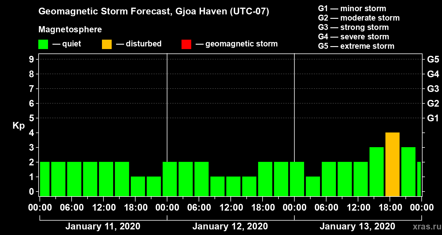 Geomagnetic storm forecast in Gjoa Haven for Jan 11, 2020