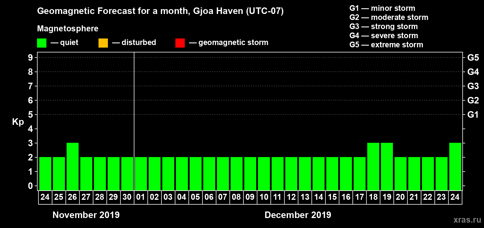 Geomagnetic storm forecast in Gjoa Haven for Nov 24, 2019