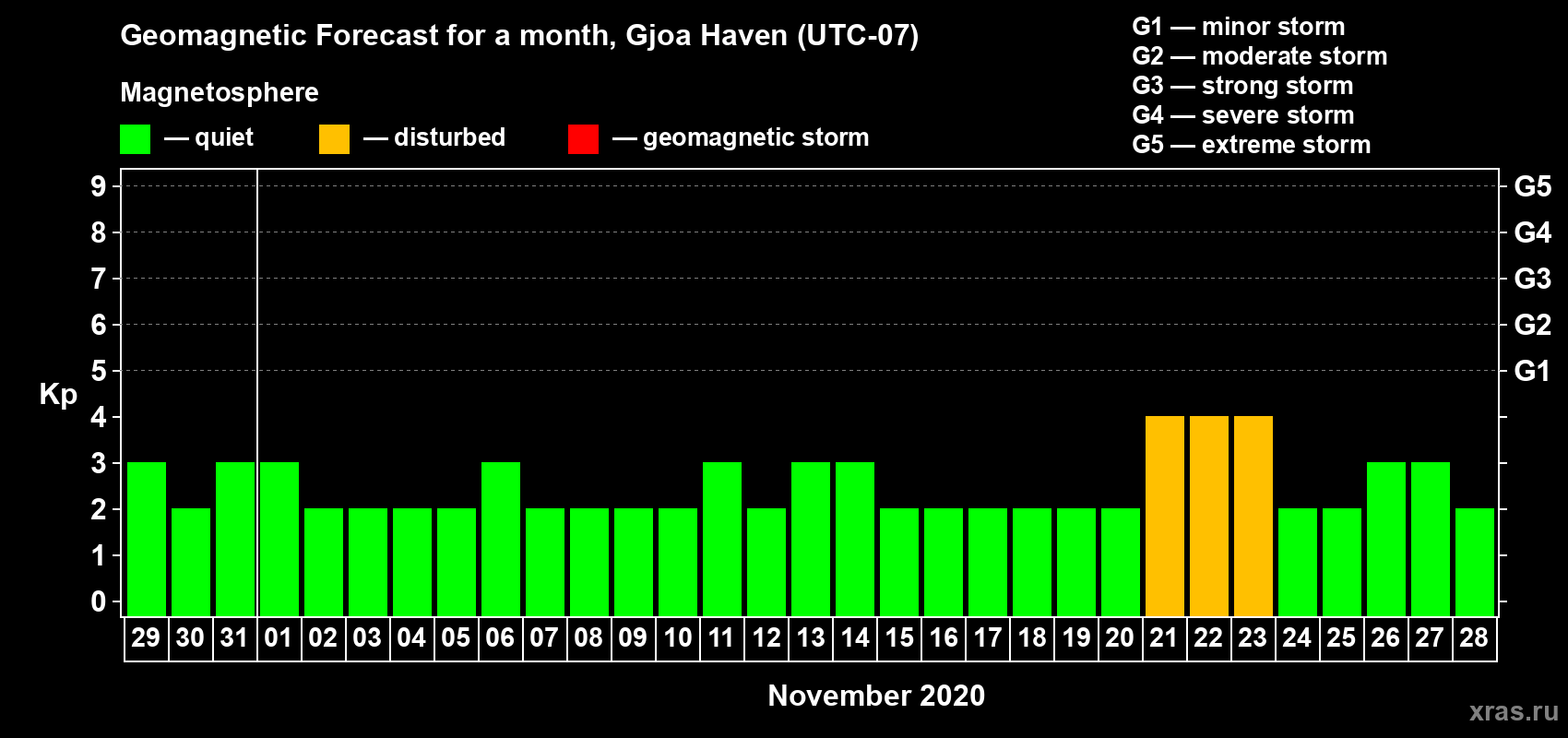 Geomagnetic activity forecast in Gjoa Haven — Oct 29, 2020