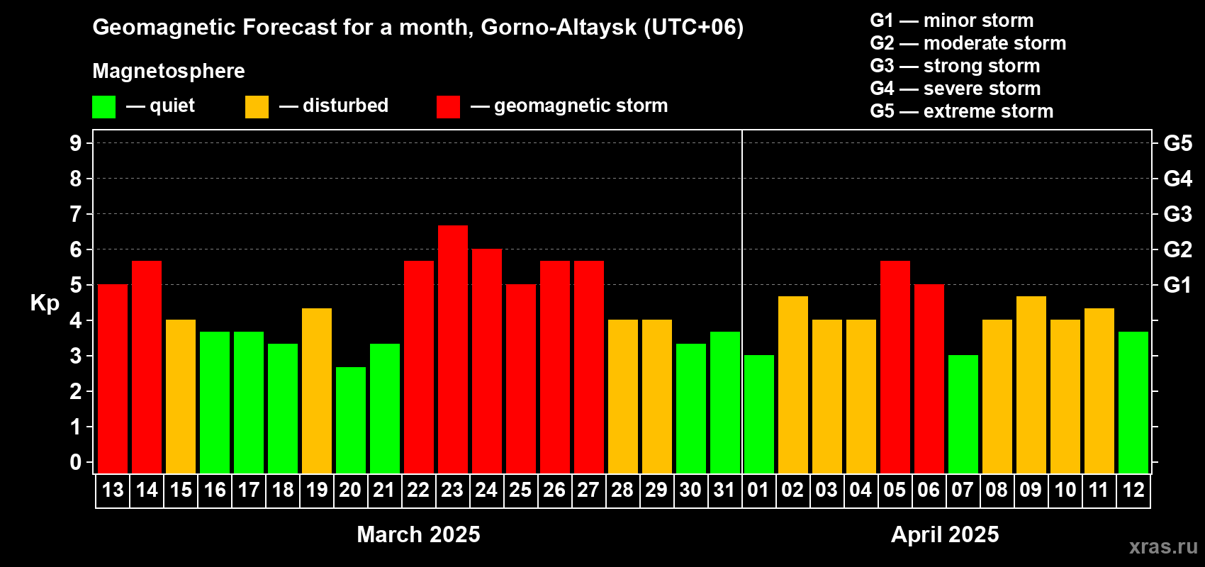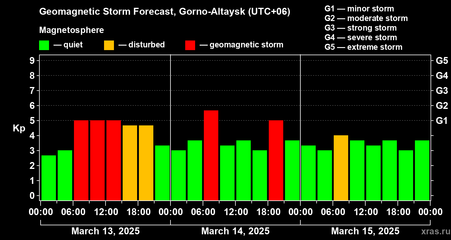 Geomagnetic storm forecast in Gorno-Altaysk for Mar 13, 2025