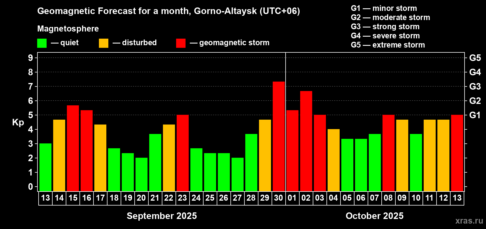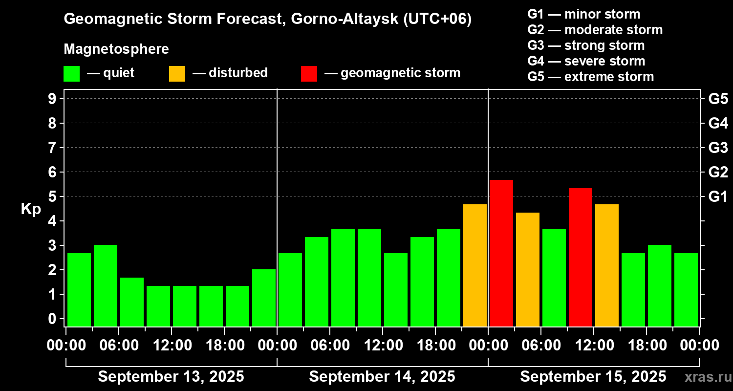 Geomagnetic storm forecast in Gorno-Altaysk for Sep 13, 2025