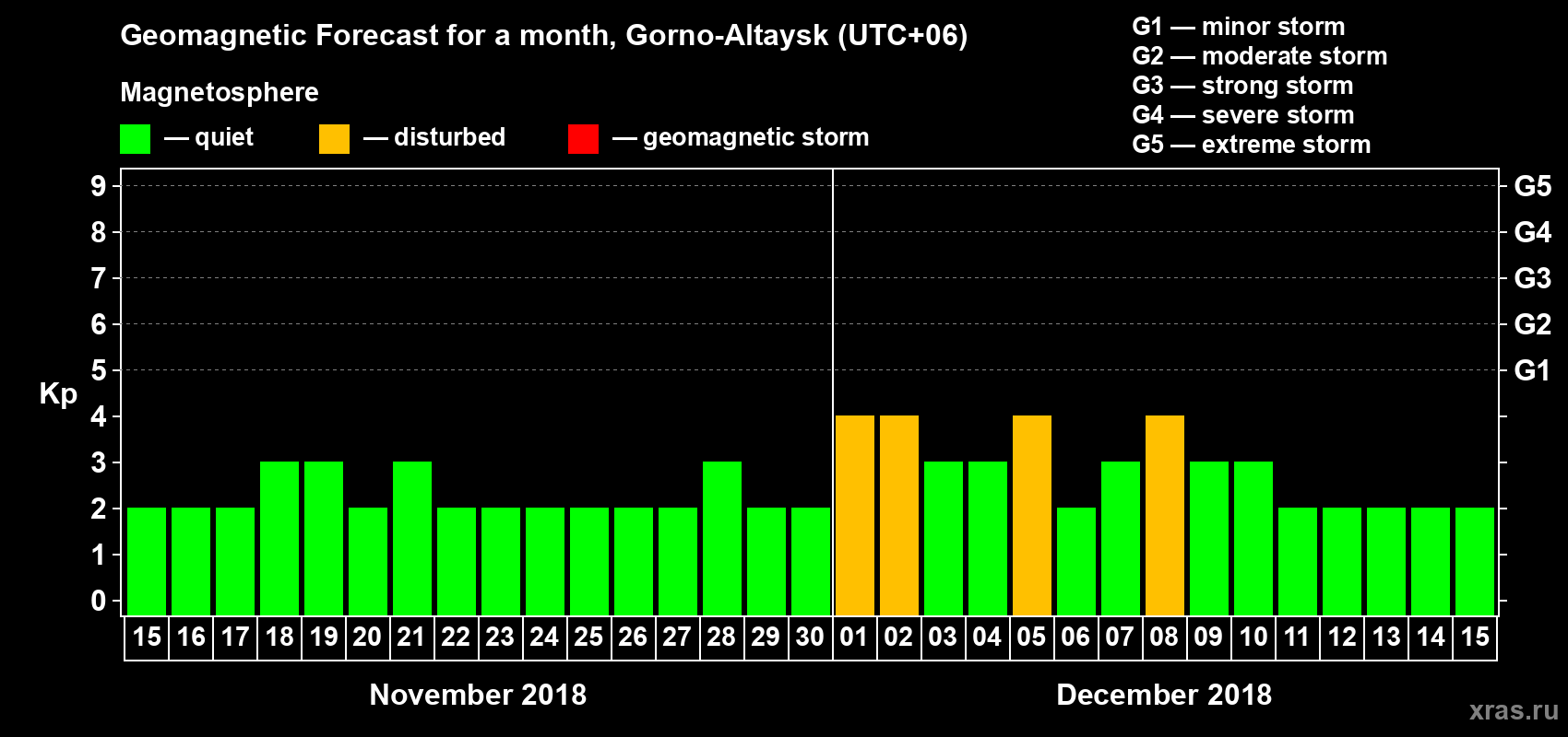 Geomagnetic storm forecast in Gorno-Altaysk for Nov 15, 2018
