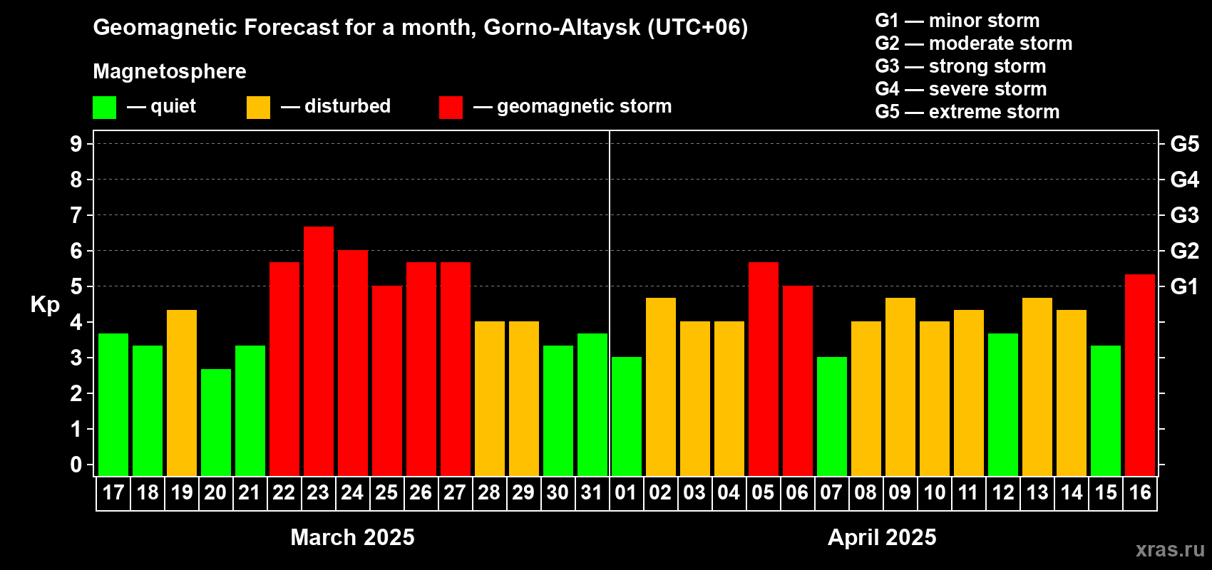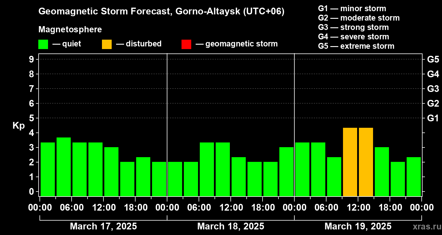 Geomagnetic storm forecast in Gorno-Altaysk for Mar 17, 2025