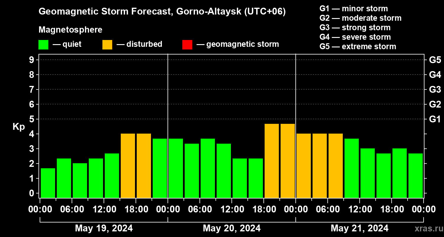 Geomagnetic activity forecast in Gorno-Altaysk — May 19, 2024