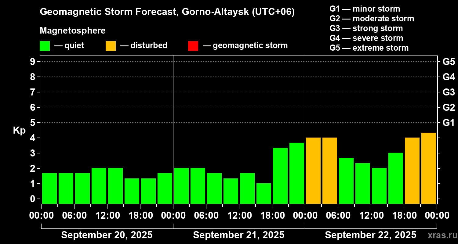 Geomagnetic storm forecast in Gorno-Altaysk for Sep 20, 2025