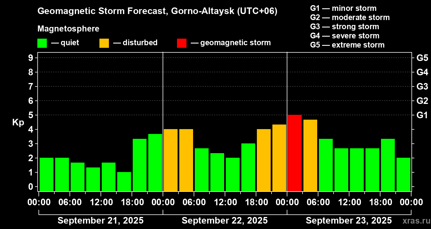 Geomagnetic storm forecast in Gorno-Altaysk for Sep 21, 2025