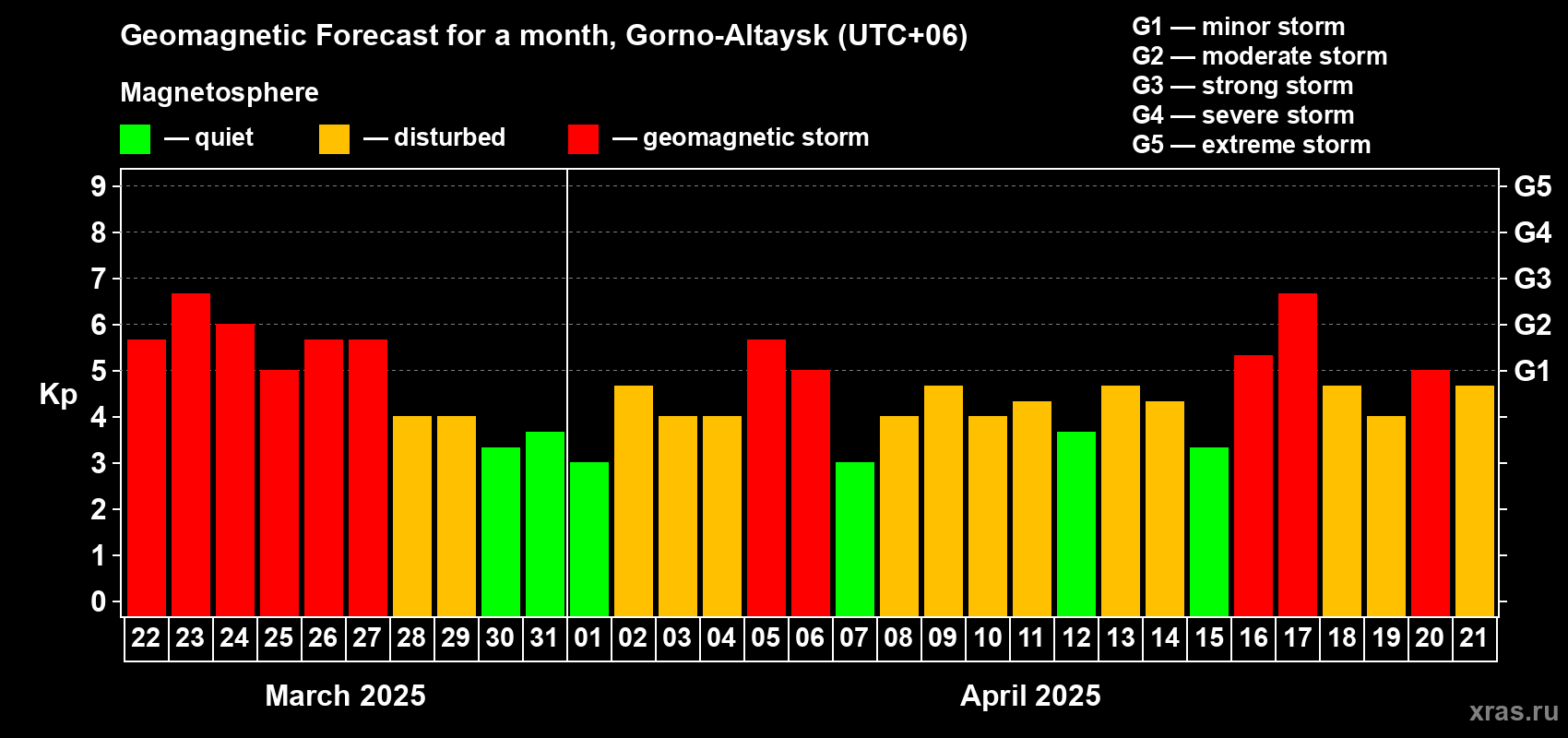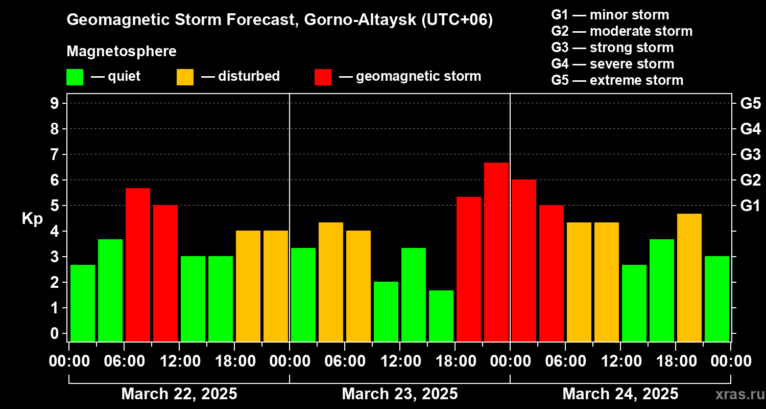 Geomagnetic storm forecast in Gorno-Altaysk for Mar 22, 2025
