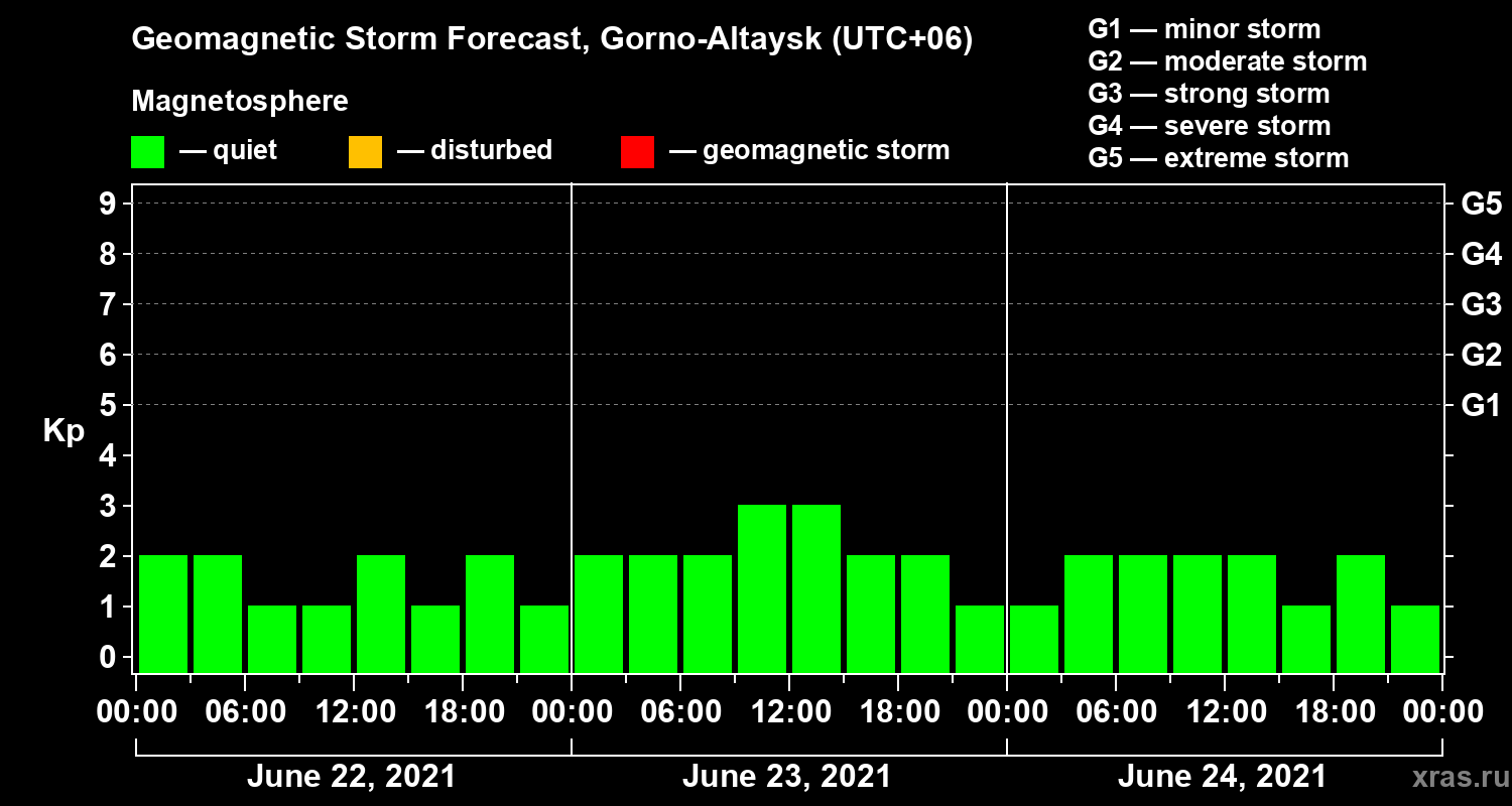 Geomagnetic activity forecast in Gorno-Altaysk — Jun 22, 2021