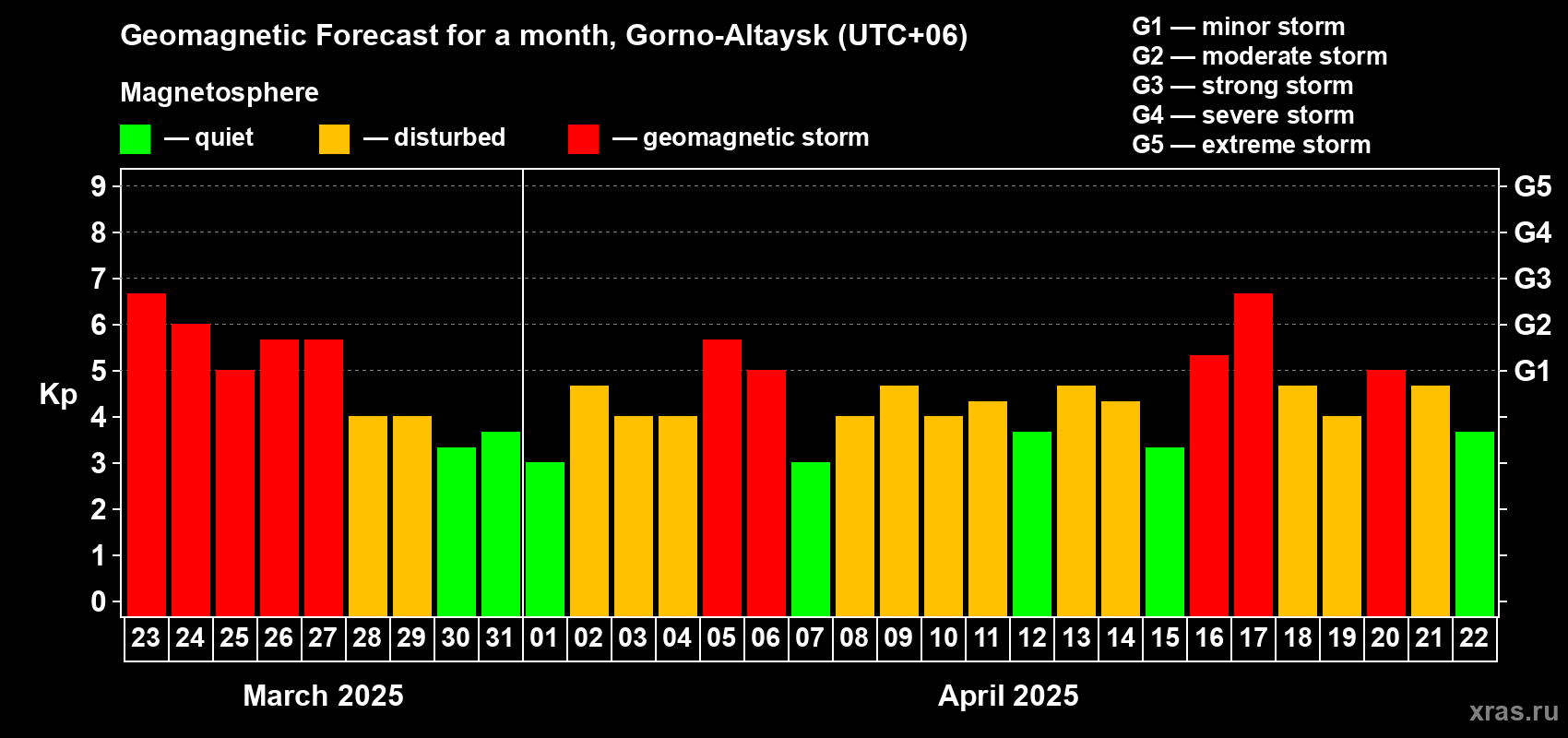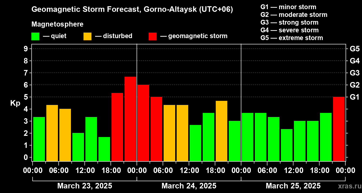 Geomagnetic storm forecast in Gorno-Altaysk for Mar 23, 2025