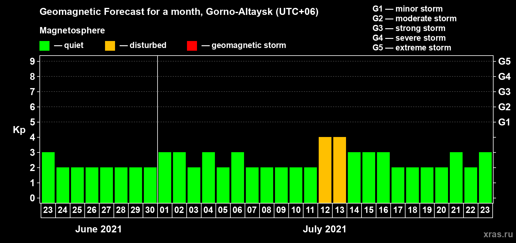 Geomagnetic activity forecast in Gorno-Altaysk — Jun 23, 2021
