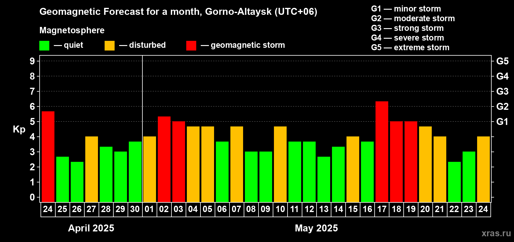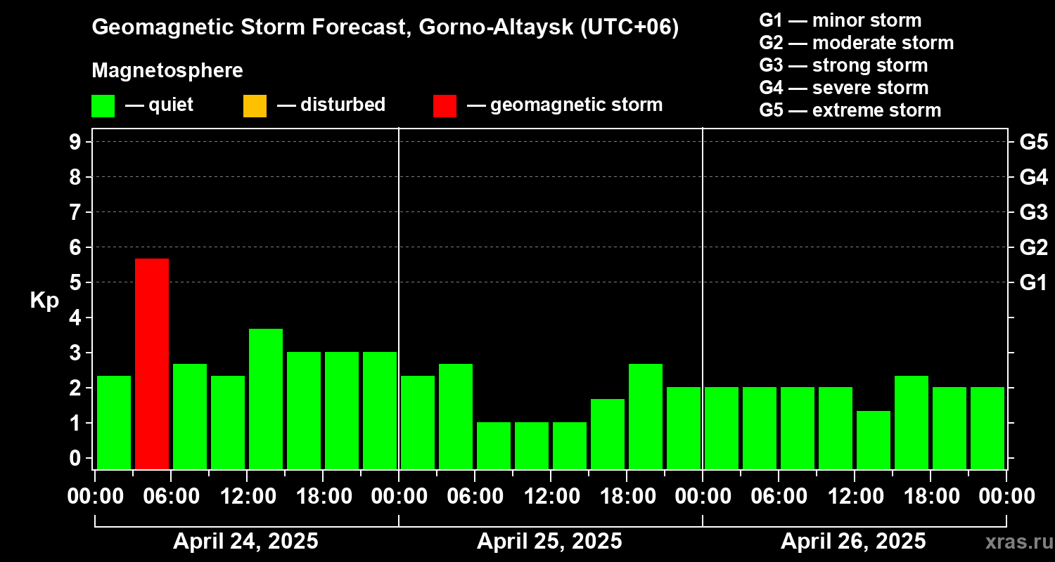 Geomagnetic storm forecast in Gorno-Altaysk for Apr 24, 2025