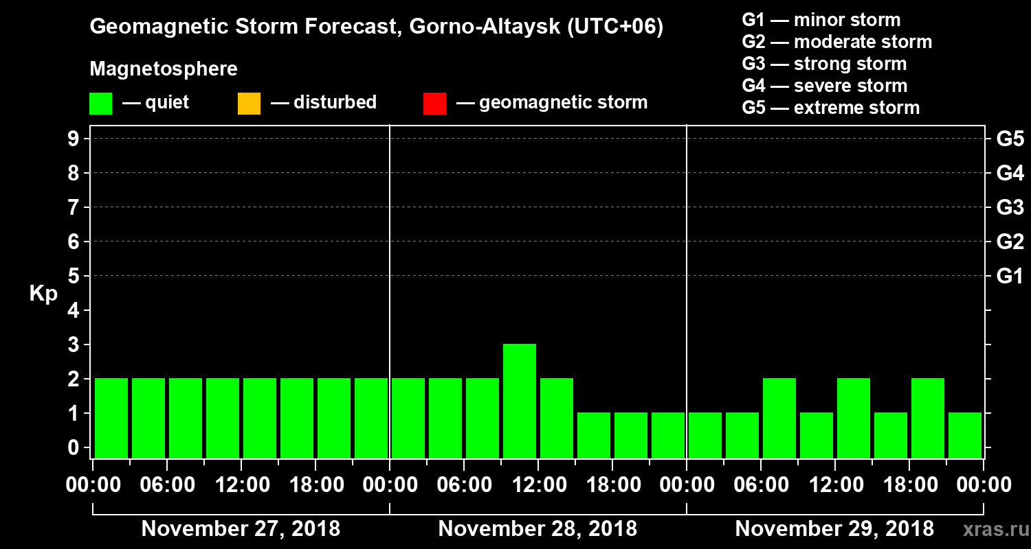 Geomagnetic activity forecast in Gorno-Altaysk — Nov 27, 2018