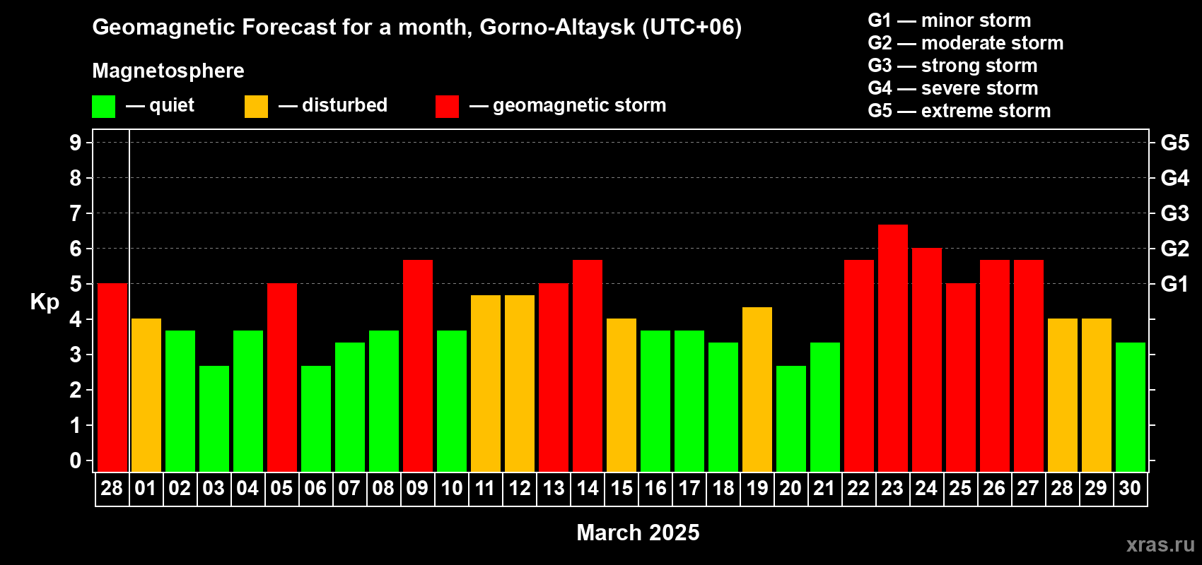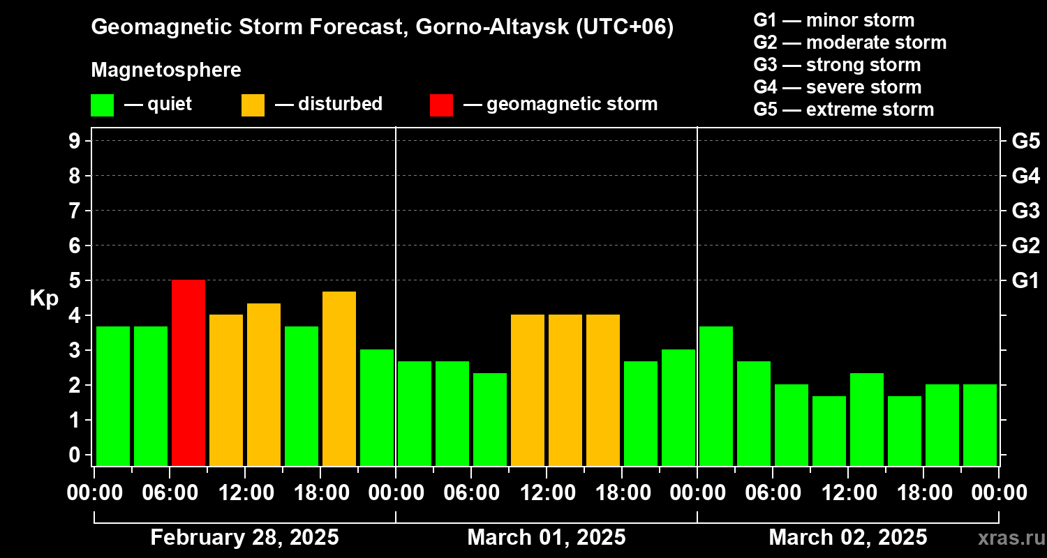Geomagnetic storm forecast in Gorno-Altaysk for Feb 28, 2025