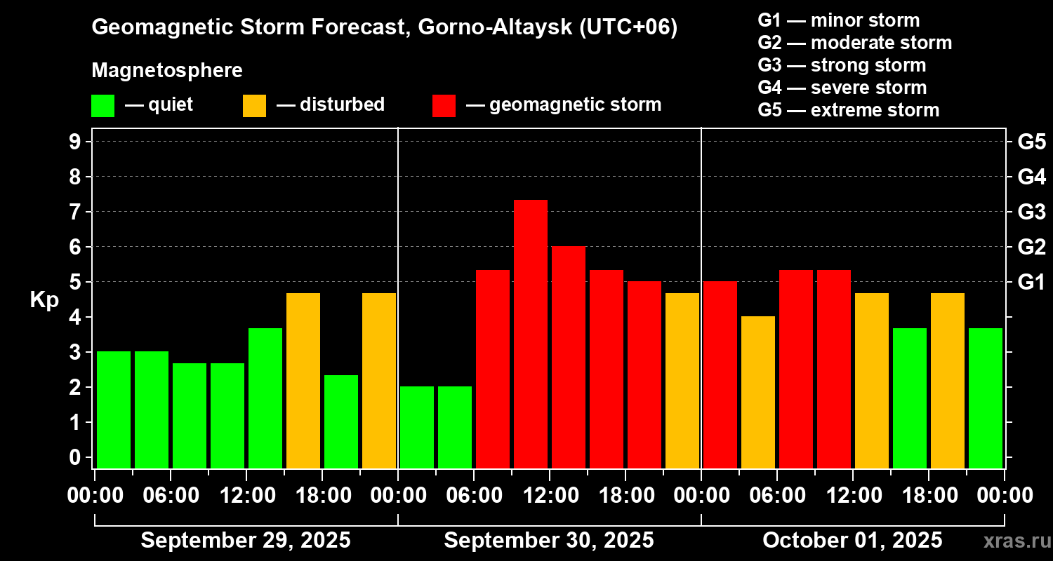 Geomagnetic storm forecast in Gorno-Altaysk for Sep 29, 2025