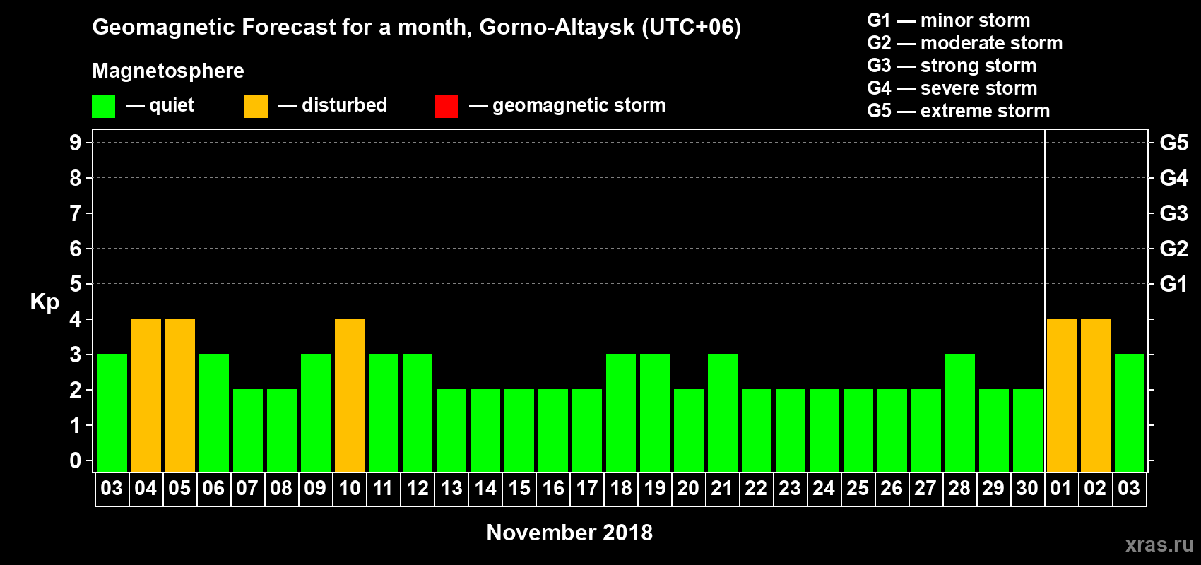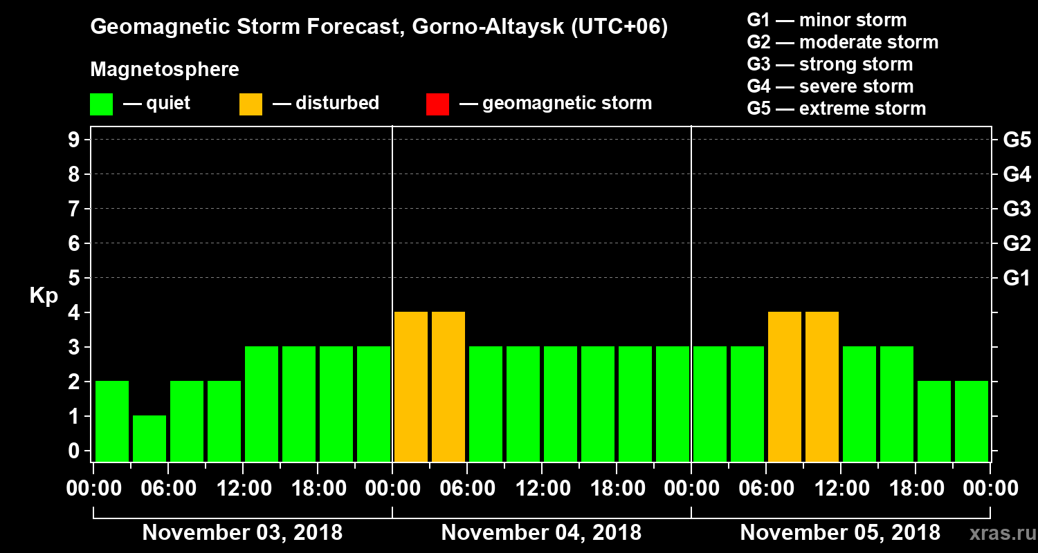 Geomagnetic storm forecast in Gorno-Altaysk for Nov 03, 2018
