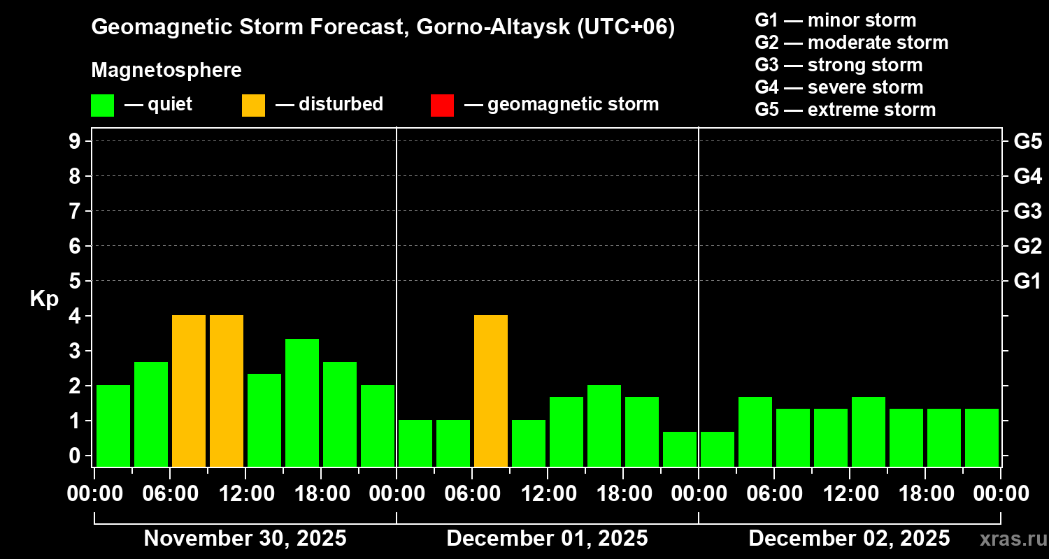Geomagnetic activity forecast in Gorno-Altaysk — Nov 30, 2025